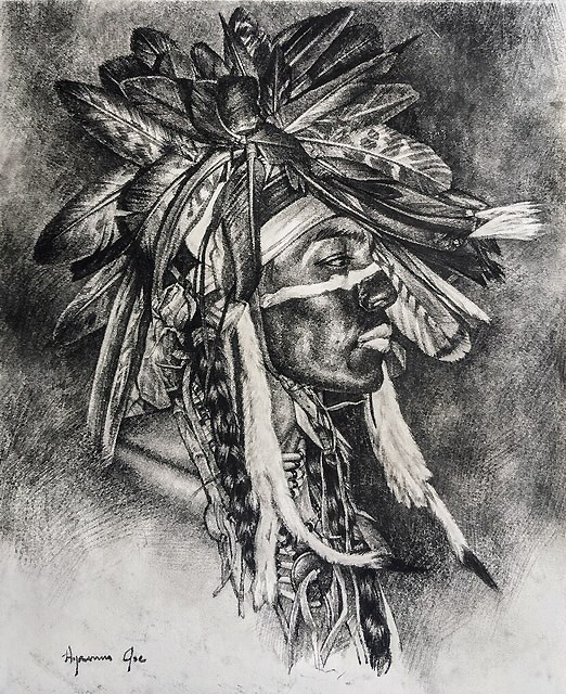 This charcoal drawing by Hyrum Joe is titled “Cheyenne War Paint.” It measures 17” x 14”. Please inquire by calling 1.800.854.1359 or by sending us an email.