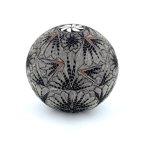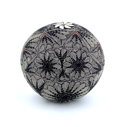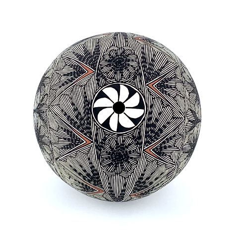 Acoma designs. He combines patterns and motifs in his own version