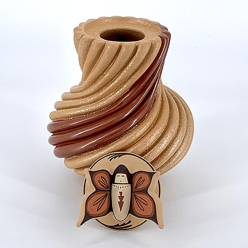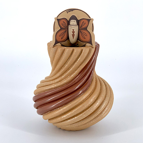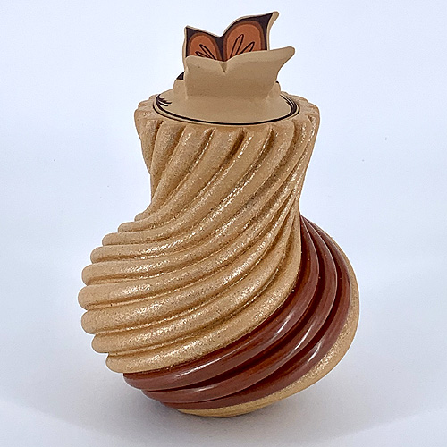 styled hand coiled melon swirl pottery with butterfly lids. She