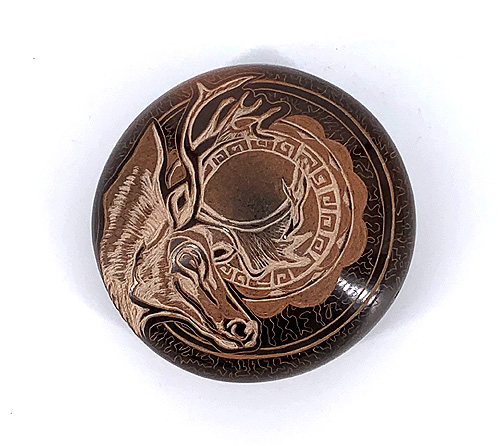 Dusty chose to continue hand coiling the sienna firing style, which is a color in-between that of the traditional Santa Clara black and red. The sienna style, or technique is the style the “Naranjo Family” is well known for making.