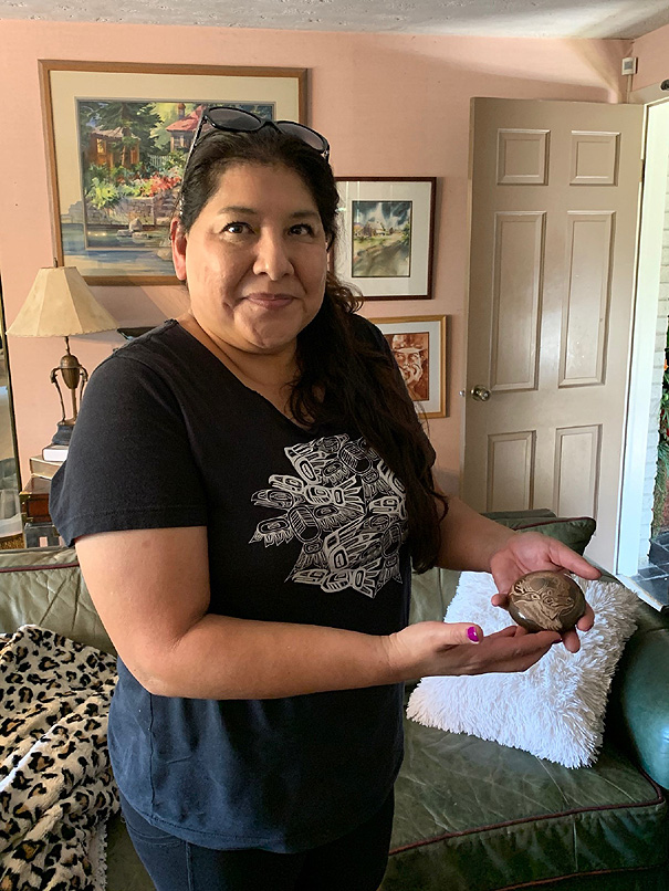 Dusty Naranjo was born in 1968 into the Santa Clara Pueblo. She is the daughter of Tito and Bernice Naranjo. Dusty learned how to hand coil traditional pottery when she was approximately twenty years old.
