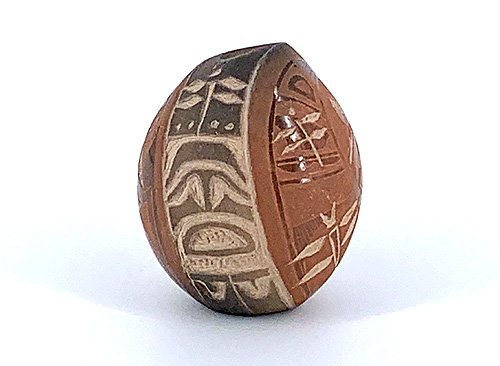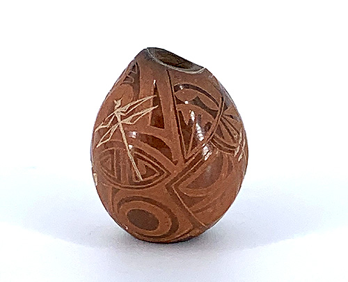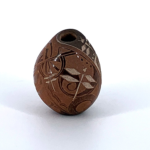 This is a contemporary style started in the late 1960’s and early 1970’s, however, this style is now considered a staple style from the Santa Clara Pueblo. She gathers her natural pigments from within the hills of the Santa Clara Pueblo and uses traditional methods while making her fine masterpieces.