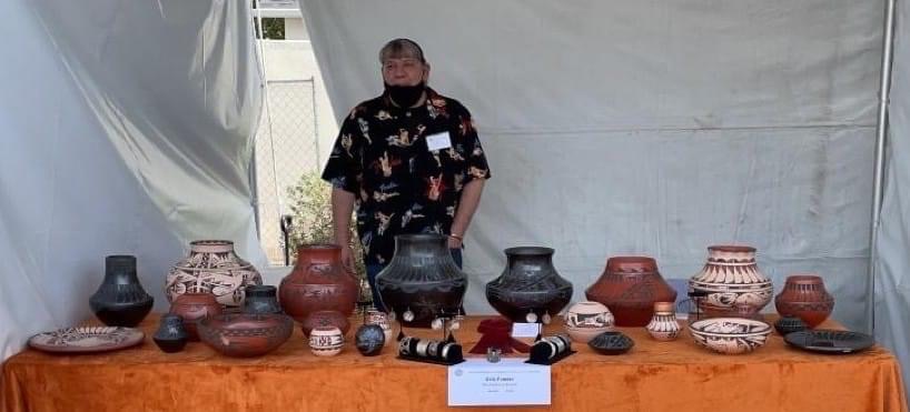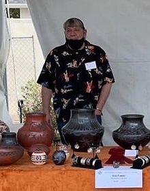 Erik Fender was born in 1970 into the San Ildefonso Pueblo. He specializes in traditional and contemporary blackware pottery.