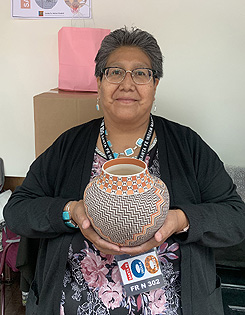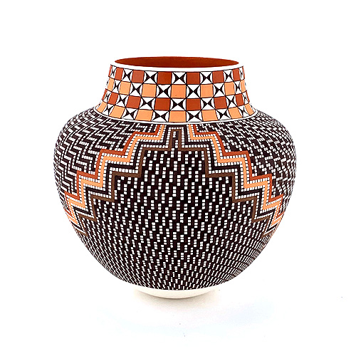Frederica Antonio was born in 1968 into the Acoma Pueblo. Frederica was inspired to continue the long lived family tradition of making pottery by her mother-in-law, Mildred Antonio.