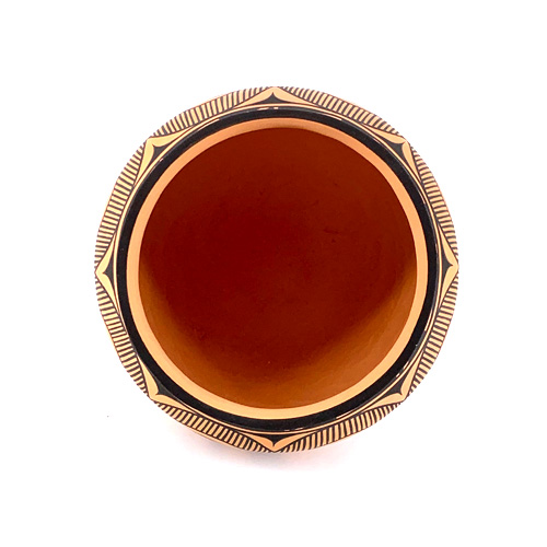 Anderson Jamie Peynetsa is the son of Anderson Peynetsa and Avelia Peynetsa. Among his aunts are Priscilla Peynetsa and Agnes Peynetsa, also well-known Zuni potters. Born in 1997, Anderson is an up and coming young potter. He's been making pots since he was 11 years old, and says his inspiration to make pottery comes from watching his father making pottery as he grew up.