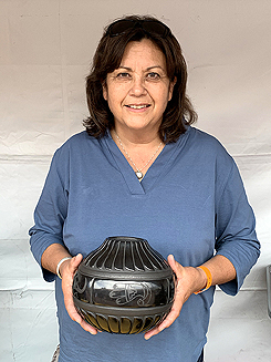 Linda is the granddaughter of famed Santa Clara potter Margaret Tafoya. Linda's father was Margaret's son, Lee Tafoya and her mother was Betty Tafoya. Both of Linda's parents passed away in recent years and Margaret Tafoya passed away in early 2001.
