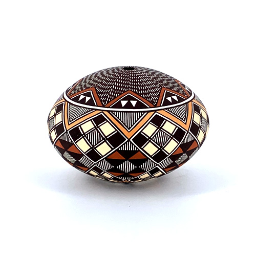 Marilyn Ray is a member of the Yellow Corn Clan and was born in 1954 into the Acoma Pueblo. She began experimenting with clay at the age of 12. Marilyn was inspired to learn the art of working with clay from observing her grandmother, the late Dolores S. Sanchez. She had mastered all the fundamentals by the age of 18 and has established herself as one of the finest Storyteller makers working today.
