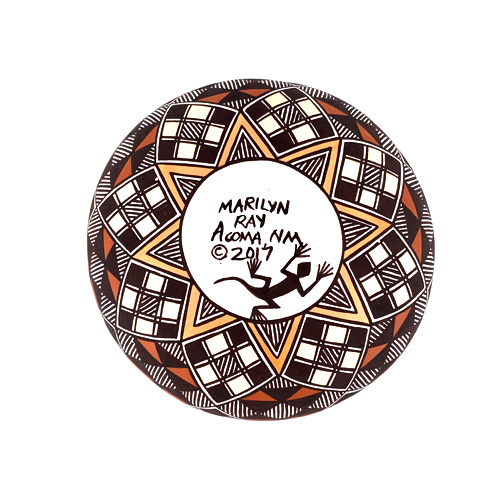 Marilyn combines her skills in both traditional pottery making and figurative work. She signs her sculptures as: Marilyn Ray, Acoma, N.M. followed by a hand drawn lizard. She is related to: Rebecca Lucario, Judy Lewis, Diane Lewis, Carolyn Concho (sisters), Katherine Lewis (mother), and Sharon Lewis (sister in law).